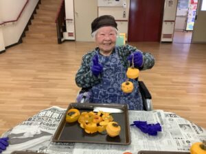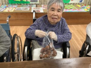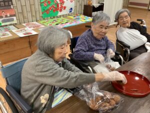 「美味しそうに出来とるね」「お正月が楽しみ」と袋詰めのお手伝いをしていただきました😄