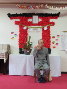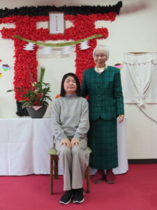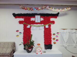 鳥居の飾り付けの前で記念撮影をパチリ📷