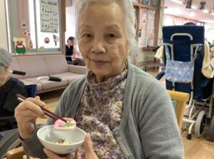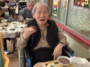 黒豆や伊達巻などのおせち料理に加えて、11月の園芸クラブで作った干し柿も一緒に提供いたしました😋