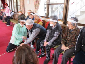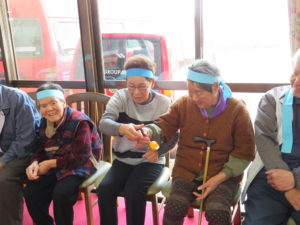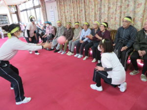 皆さん、真剣にピンポン玉を、リレーしてます😤