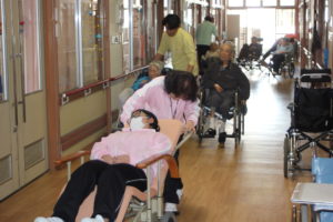 消防訓練は年に3回実施しており、職員はもちろんのこと、入所者の皆さんも真剣に取り組みました