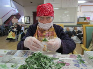 【くじゃくの家】よもぎちぎりを行いました