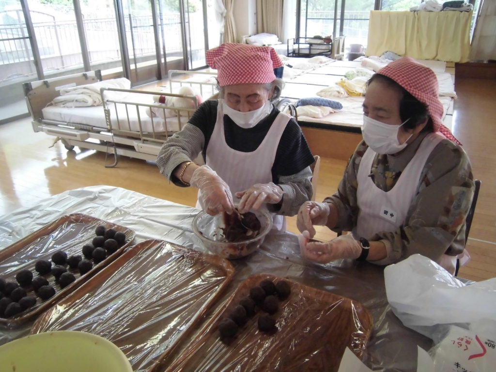 あんこを丸めてご利用者の方も一緒にお手伝いして下さってます(*’▽’)
