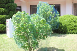 実が赤く色づくまで野鳥に取られないようネットをかぶせていました