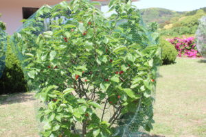 実が赤く色づくまで野鳥に取られないようネットをかぶせていました
