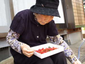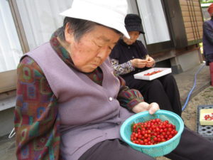 『ようなっとる』『頑張って採らんばばいねぇ~』と たくさん実ったさくらんぼを皆さん熱心に採られていました😳
