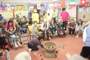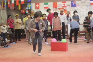 老人クラブの方々は 皆さんが投げたお手玉の回収に大忙しでした