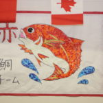 (各チームの旗は 利用者の皆さん方と一緒に貼り絵を行い手作りです)