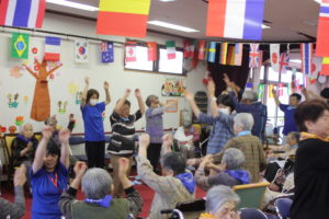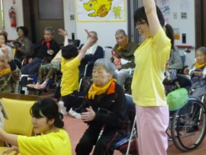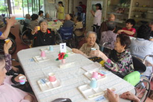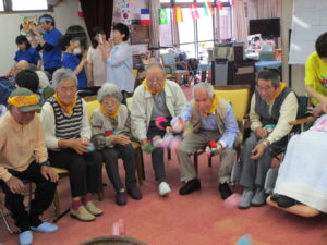令和元年5月14日(火) くじゃくの家では、川棚町老人クラブ連合会の方々と一緒にミニ運動会を行いました