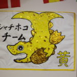 (各チームの旗は 利用者の皆さん方と一緒に貼り絵を行い手作りです)