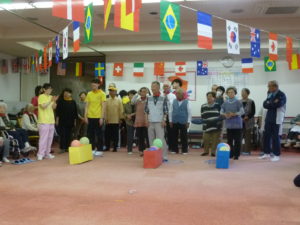 老人クラブの方々は 皆さんが投げたお手玉の回収に大忙しでした