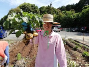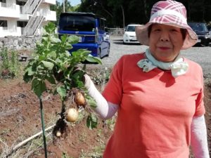 5/21(火)入居者様が育てていらっしゃる、施設職員駐車場の一角にある畑で作物の収穫をしました☺️