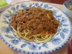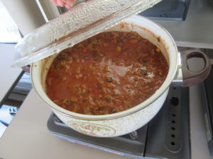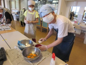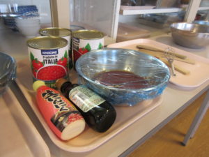 5月28日(火)に皆さんがお昼にいただくミートソースのソースと卵スープを作りました。