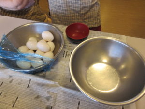卵も割っておきましょう。『卵はこがんやってわるとよ』