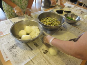 下処理が終了したらみんなでみじん切りをしていきます。手を切らないように気をつけて!