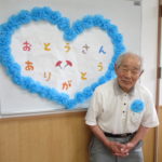 父の日ということで おとうさんありがとう の壁飾りの前で写真撮影を行いました📷