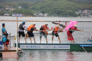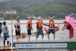 川棚町で毎年海開きに行われている大崎海上綱引き大会に今年もくじゃくの家で参加してきました😄