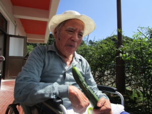 散歩の途中で くじゃくの家で作ったキュウリの収穫も楽しまれていました