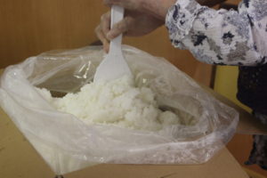 ふっくらと出来上がったご飯を しゃもじでほぐしていただきました