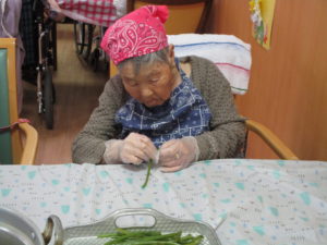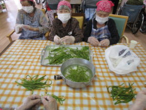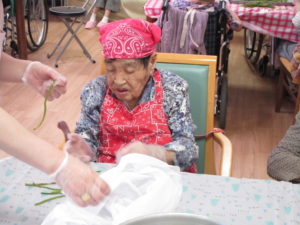 9月の園芸クラブは 皆さんと一緒に芋づる剥きを行いました😄